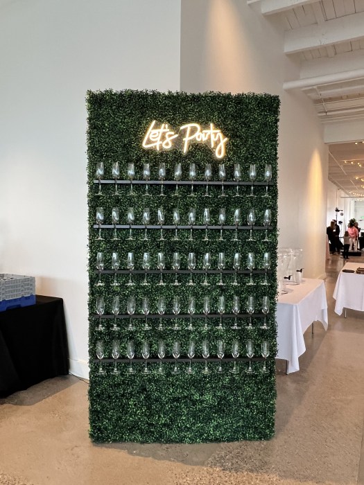 Pop the Prosescco because 60 wine glasses and neon sign are included.